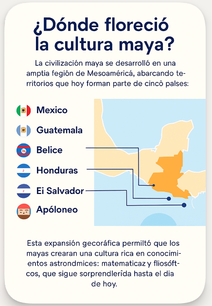 La civilización maya se desarrolló en una amplia región de Mesoamérica, abarcando territorios que hoy forman parte de cinco países: