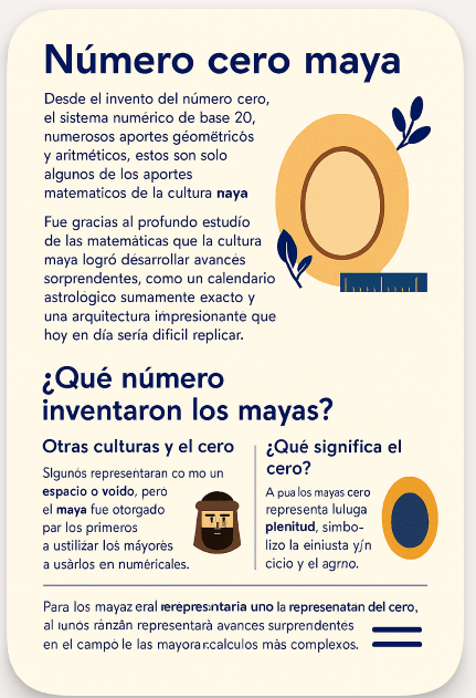 Para los mayas, el cero no representaba “nada”, sino plenitud: el cierre de un ciclo y el inicio de otro. Lo usaban para representar números complejos y facilitar cálculos avanzados.