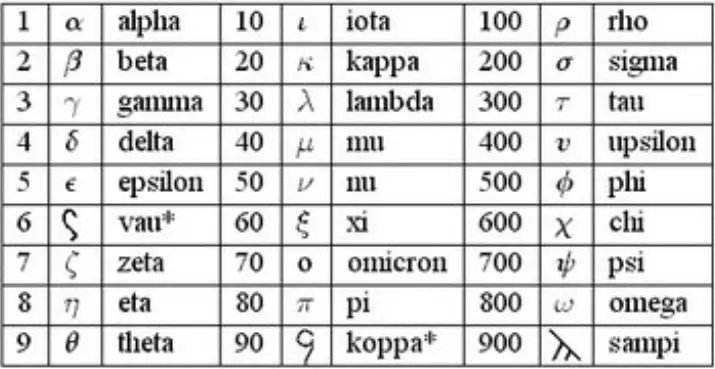 Como en Grecia todos los números podían representarse con letras, nació el arte de la Isopsefia, que le daba un valor numérico a las palabras y viceversa. Este sistema es parecido a la Gematría hebrea, practicada por siglos.