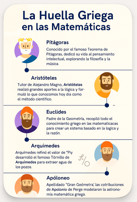 - 🧠 Gracias a esto, los griegos introdujeron el razonamiento deductivo, un sistema ordenado de pensamiento en el que cada paso se apoya en conclusiones ya probadas. Este aporte no solo marcó las matemáticas, sino también la filosofía y la ciencia en todo el mundo.