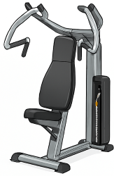 Siéntate en la máquina, ajusta el respaldo y agarra las barras laterales. El movimiento consiste en empujar hacia arriba, extendiendo los brazos sin levantar los hombros. Es importante mantener los hombros estables, sin desplazarse hacia arriba ni hacia abajo durante el ejercicio.